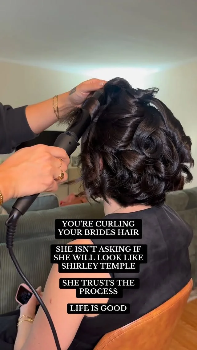 “Hype women of my wedding morning! Absolutely loved her! She was so sweet, totally in the loop with pop culture, and kept hyping up my hair! The vibe of the trial and wedding morning was relaxed and easy, and I walked out feeling confident and genuinely cared for with a beautiful mermaid hairstyle”